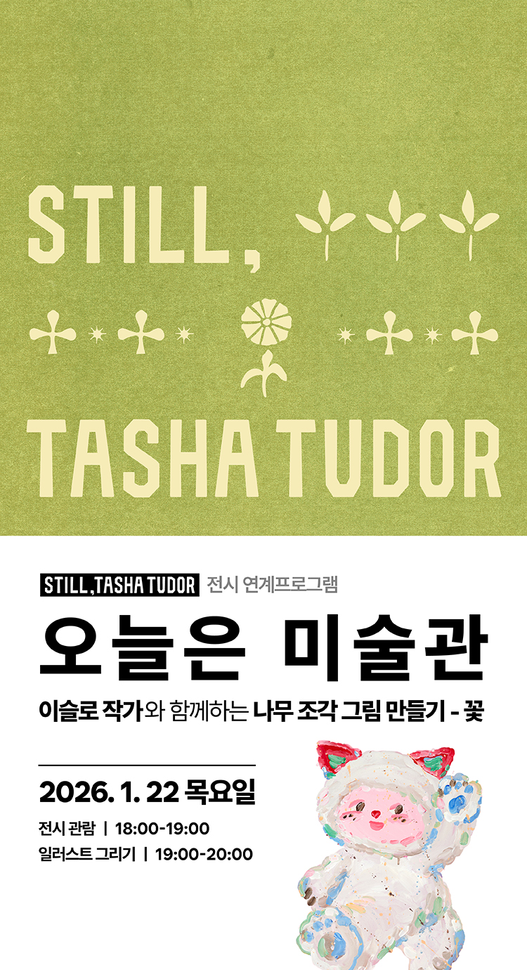 롯데뮤지엄은 아시아 최초로 미국을 대표하는 동화작가이자 일러스트레이터 타샤 튜더(Tasha Tudor, 1915–2008)의 대규모 기획전 《Still, Tasha Tudor : 행복의 아이콘, 타샤 튜더의 삶》를 선보인다. 자연과 계절의 흐름에 귀 기울이며 가족과 일상의 소박한 기쁨을 소중히 여겼던 그녀의 세계는, 오늘날에도 여전히(Still) 깊은 울림과 영감을 전한다. 이번 전시는 타샤 튜더 탄생 110주년을 기념하며, 현대 사회 속에서도 유효한 그녀의 삶의 태도와 예술세계를 통해 잊혀가는 삶의 본질을 다시금 성찰하고자 기획되었다.